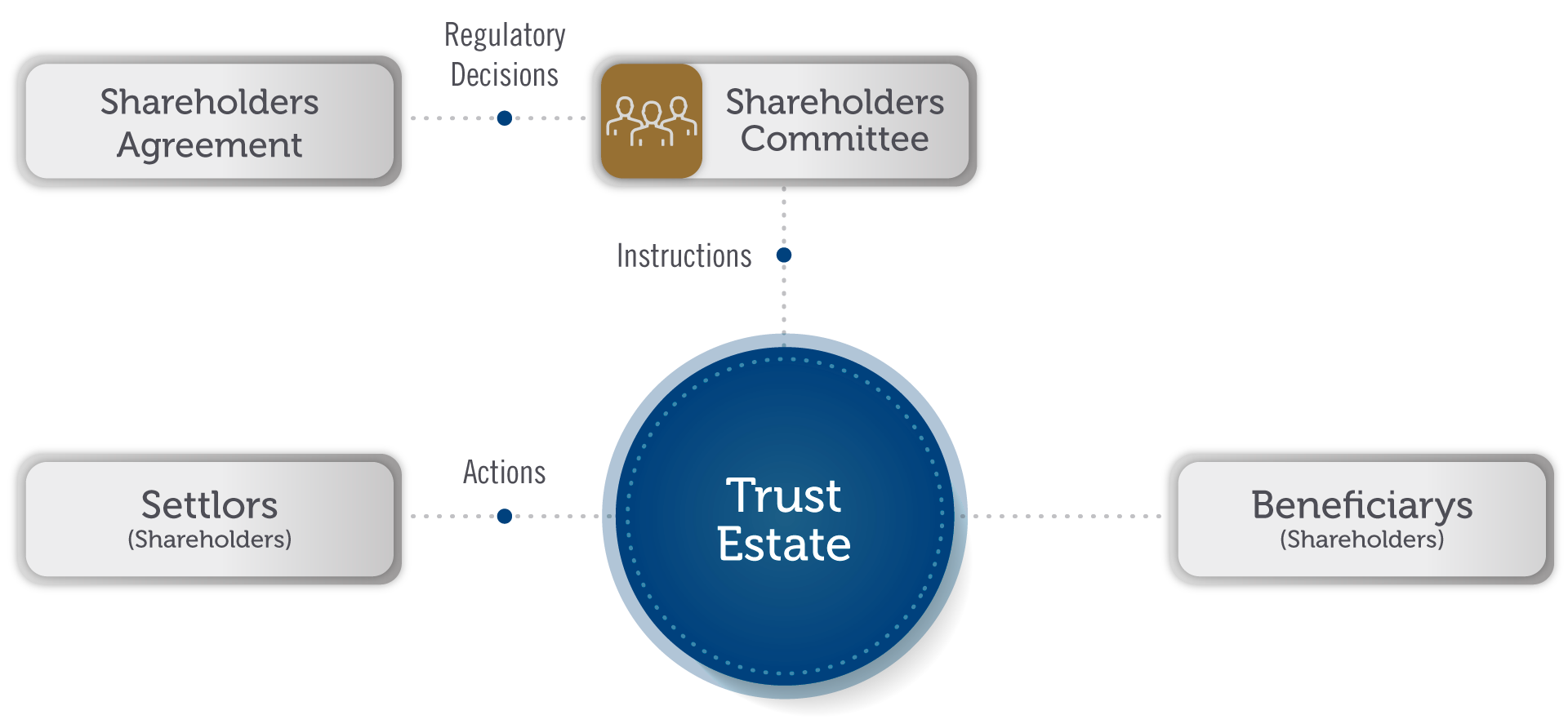 The assets are composed of the company's shares, which are assigned by a group of shareholders. Likewise, these shareholders, or whoever they define, form a committee whose decisions are regulated by the agreement and instructs The Fiduciary on how to manage the equity.